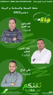لذا ندعوكم أختي الفوسفاطية أخي الفوسفاطي إلى التصويت على مرشحي النقابة الحرة للفوسفاط البديل النقابي الديمقراطي والكفاحي والحر والمستقل بقطاع الفوسفاط والذي يقدم خيرة أطره الشبابية والمتمرسة لتكون صوت العامل الفوسفاطي للدفاع عن مصالح شغيلتنا.